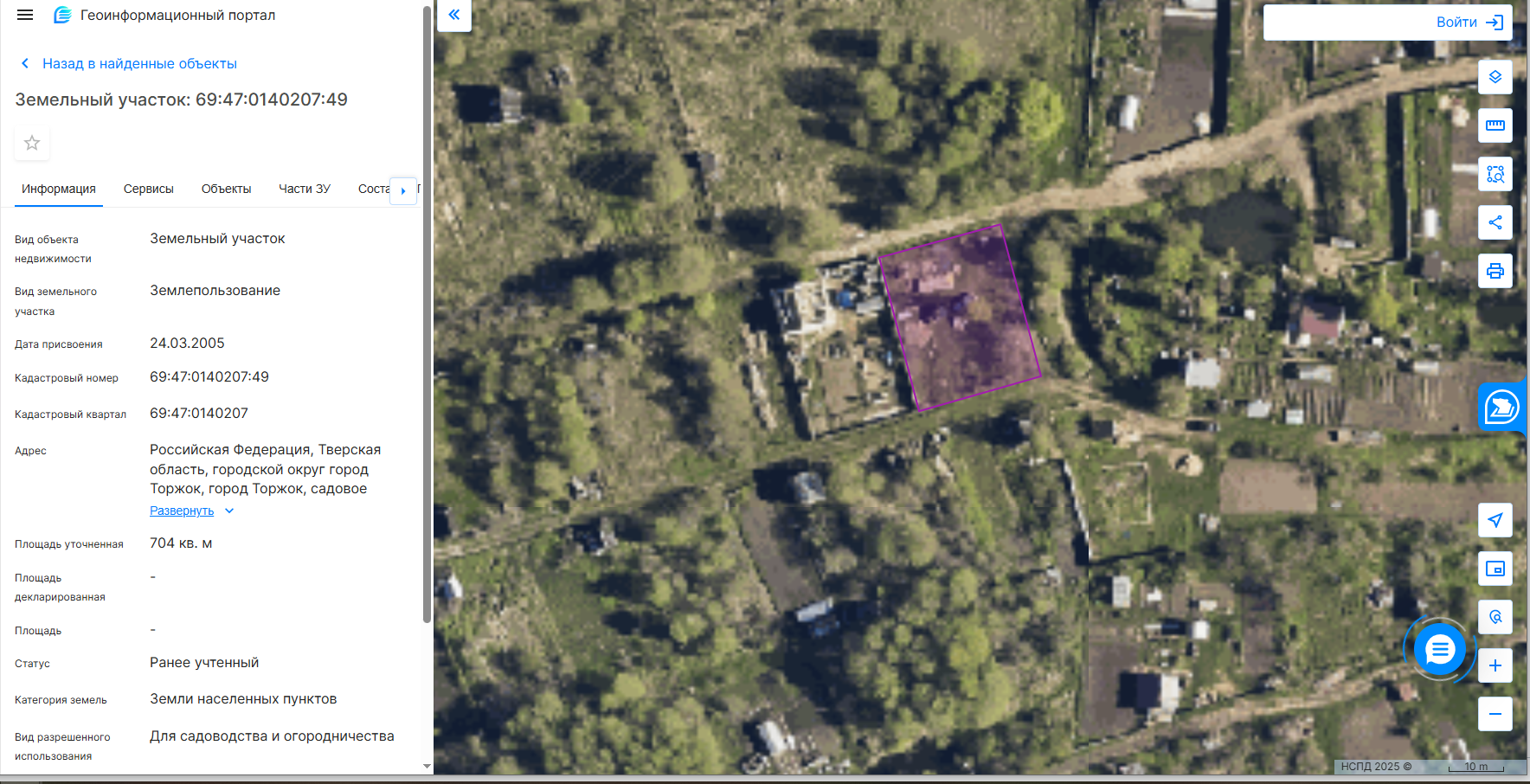 Земельный участок, находящийся в собственности муниципального образования город Торжок, расположенный по адресу: Тверская область, г.Торжок, садовое товарищество СНТ Машиностроитель-6, участок № 49, с кадастровым номером 69:47:0140207:49, площадью 704 кв.м, разрешенное использование: для садоводства и огородничества.